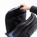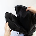 直線的なシルエットで大容量のバックパック。CORDURA®︎ fabric1000と牛革を使用しています。肩の中パッドにはハイテクノロジー機能素材「MIYAVIE」を使用し、体圧分散効果により体感重量の軽減効果を実現。メイン収納部に加え、PCやタブレットを収納できる部分が分かれているのでしっかり収納することができます。